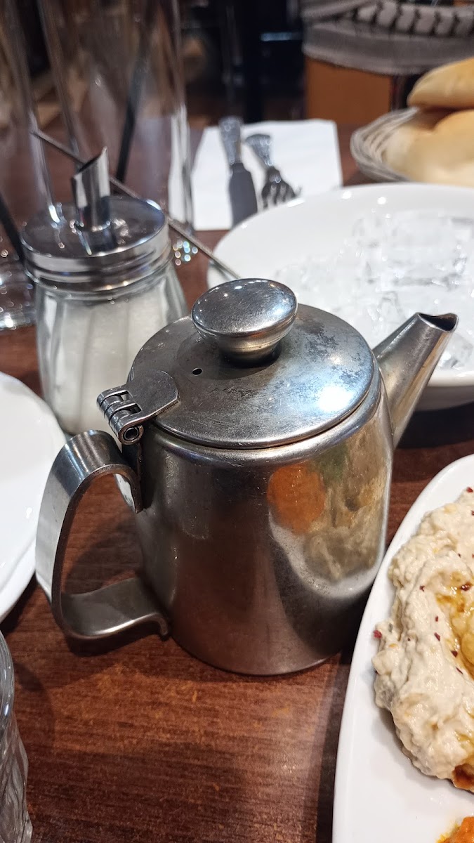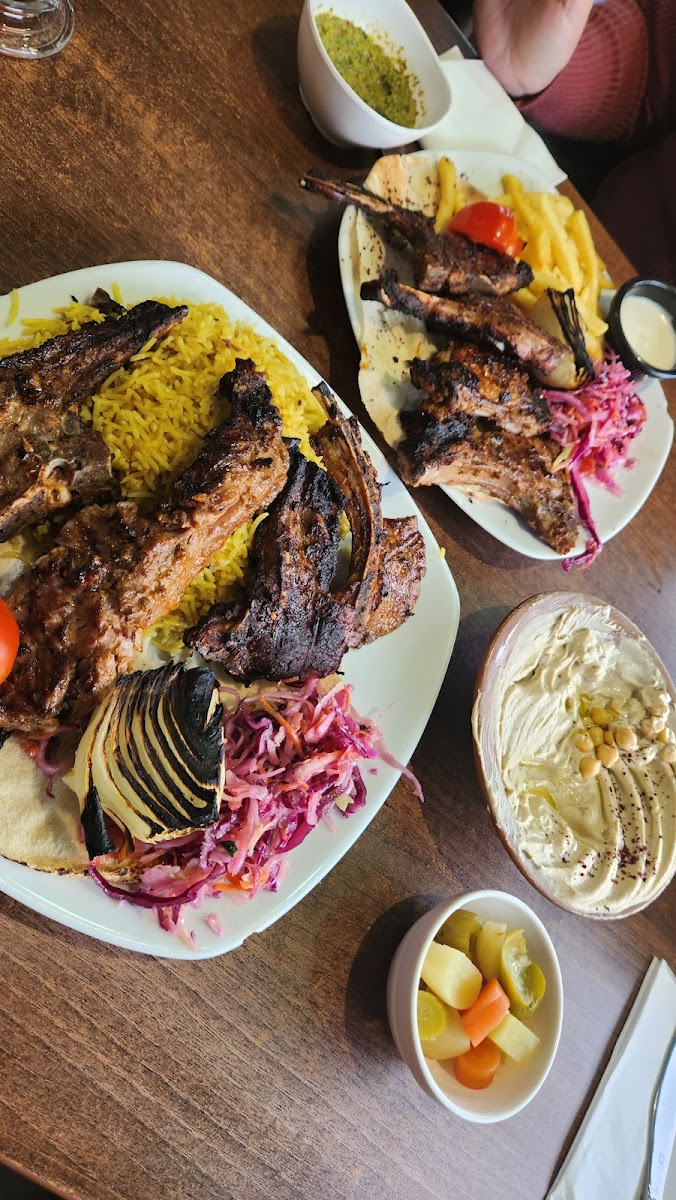 First time coming here and it won’t be the last, such a welcoming atmosphere and filled with beautiful Palestinian memorabilia. The waiter who served us was very lovely and attentive and never stopped smiling. Food was 1000/10, came promptly and full of flavour. We recommend the mixed grill platter and the lamb chops with rice. Lovely portions and lovely dessert in the end with tea. Definitely found a return customer in us!